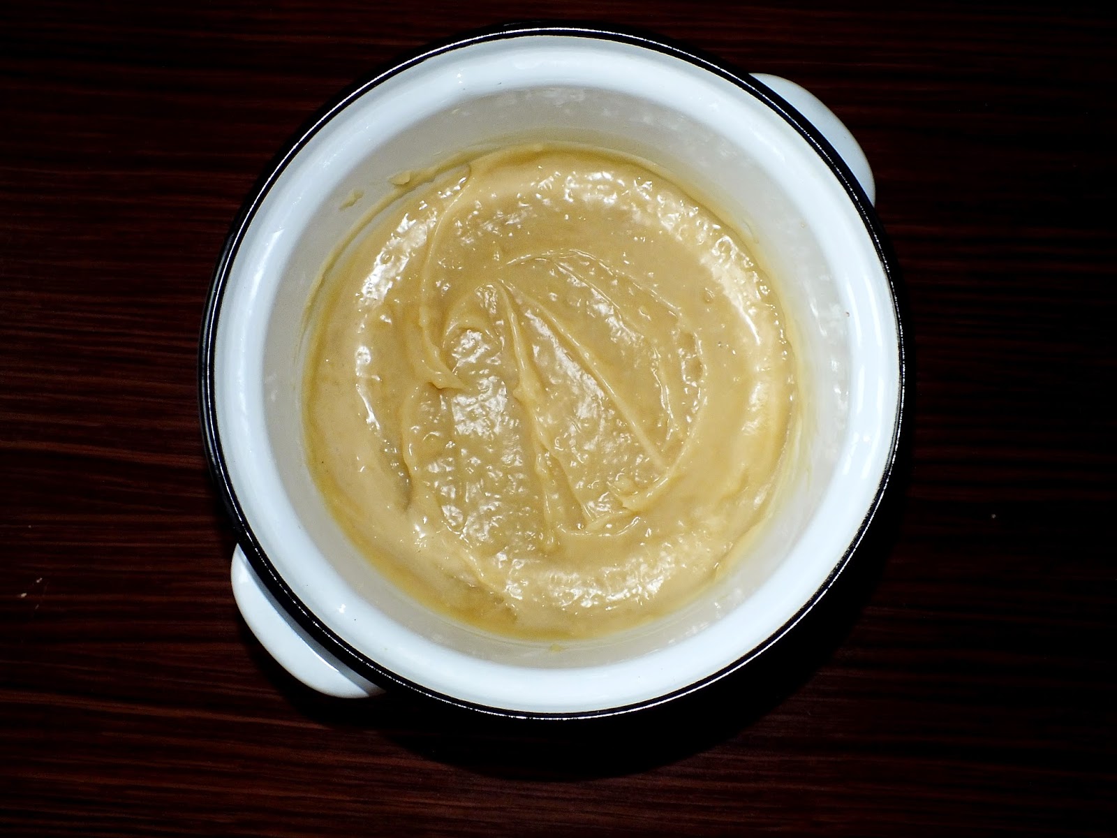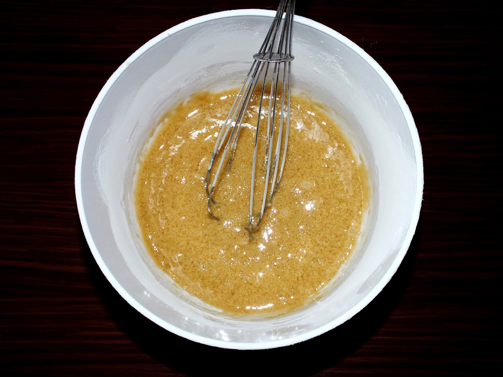 В желтковую массу ввести растопленное масло. Затем сметану. Добавить просеянную муку и разрыхлитель