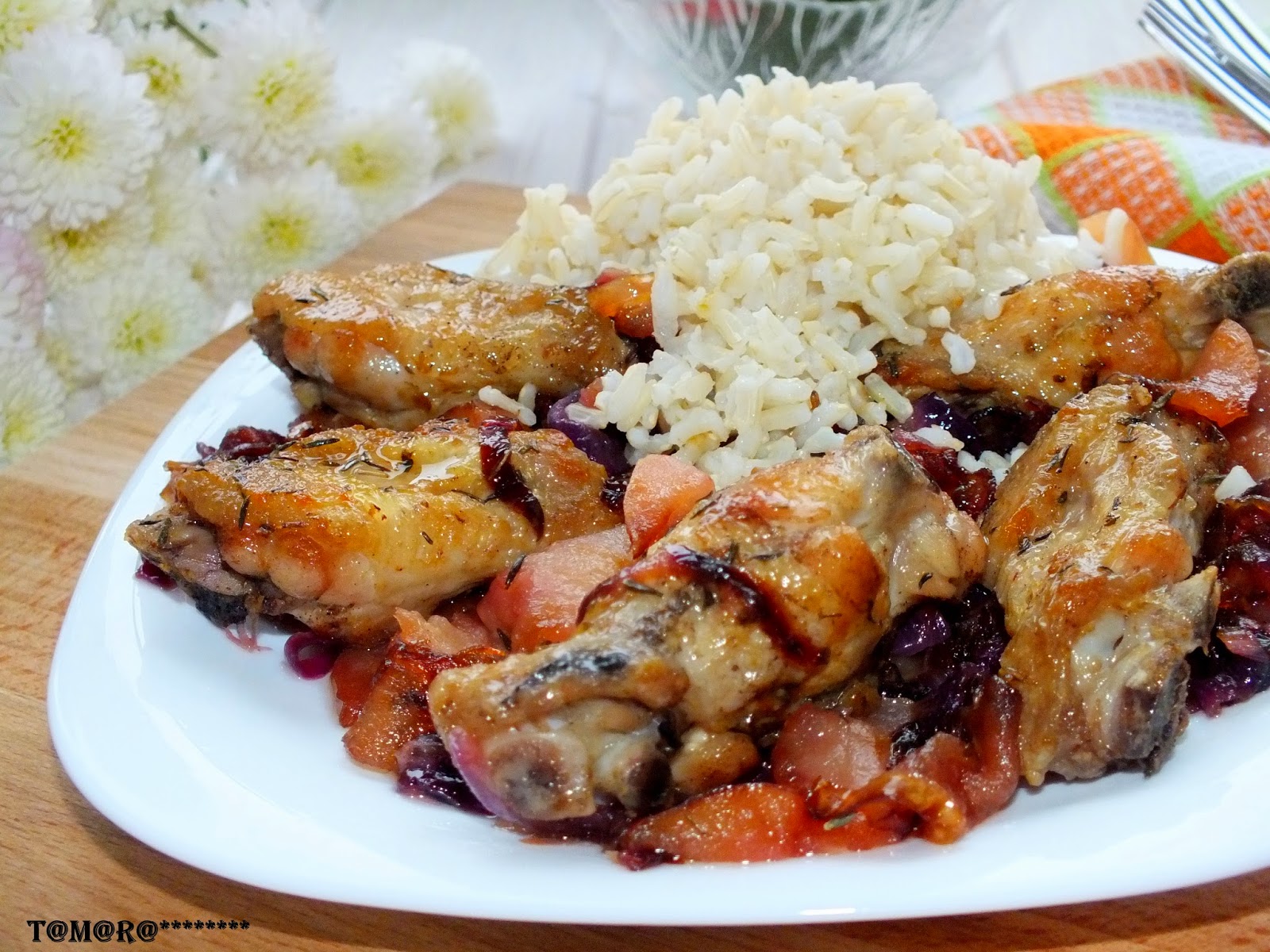 КУРИНЫЕ КРЫЛЬЯ С КАРАМЕЛИЗИРОВАННЫМИ ЯБЛОКАМИ И ЛУКОМ
