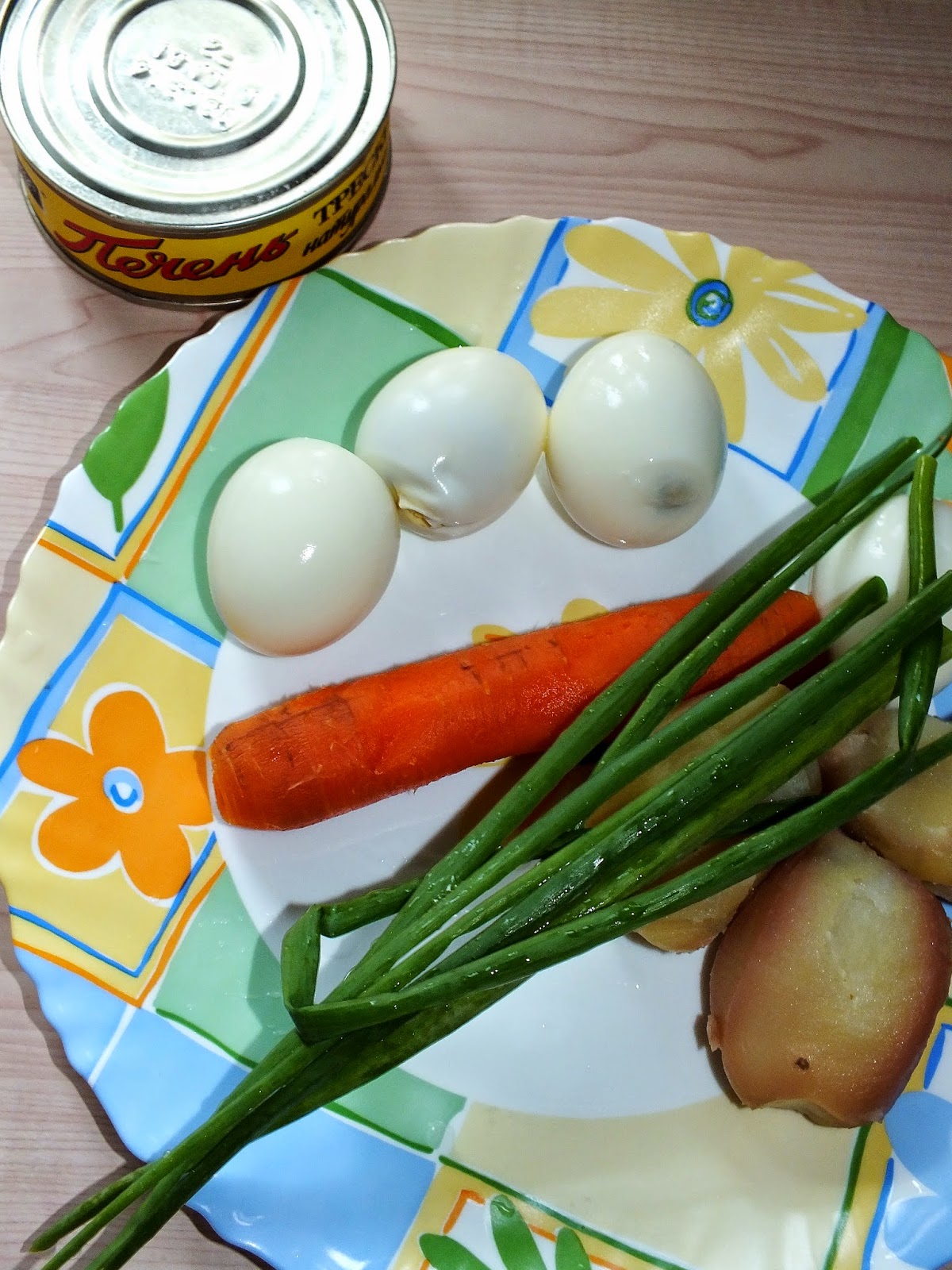 Далее выкладываем печень трески (нужно размять вилкой) и посыпаем зеленым луком