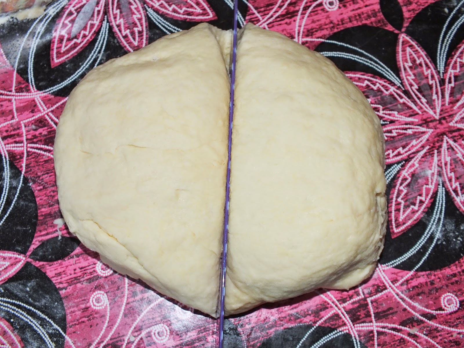 Добавить оставшуюся муку. Замесить мягкое, эластичное тесто и разделить его на 2 части