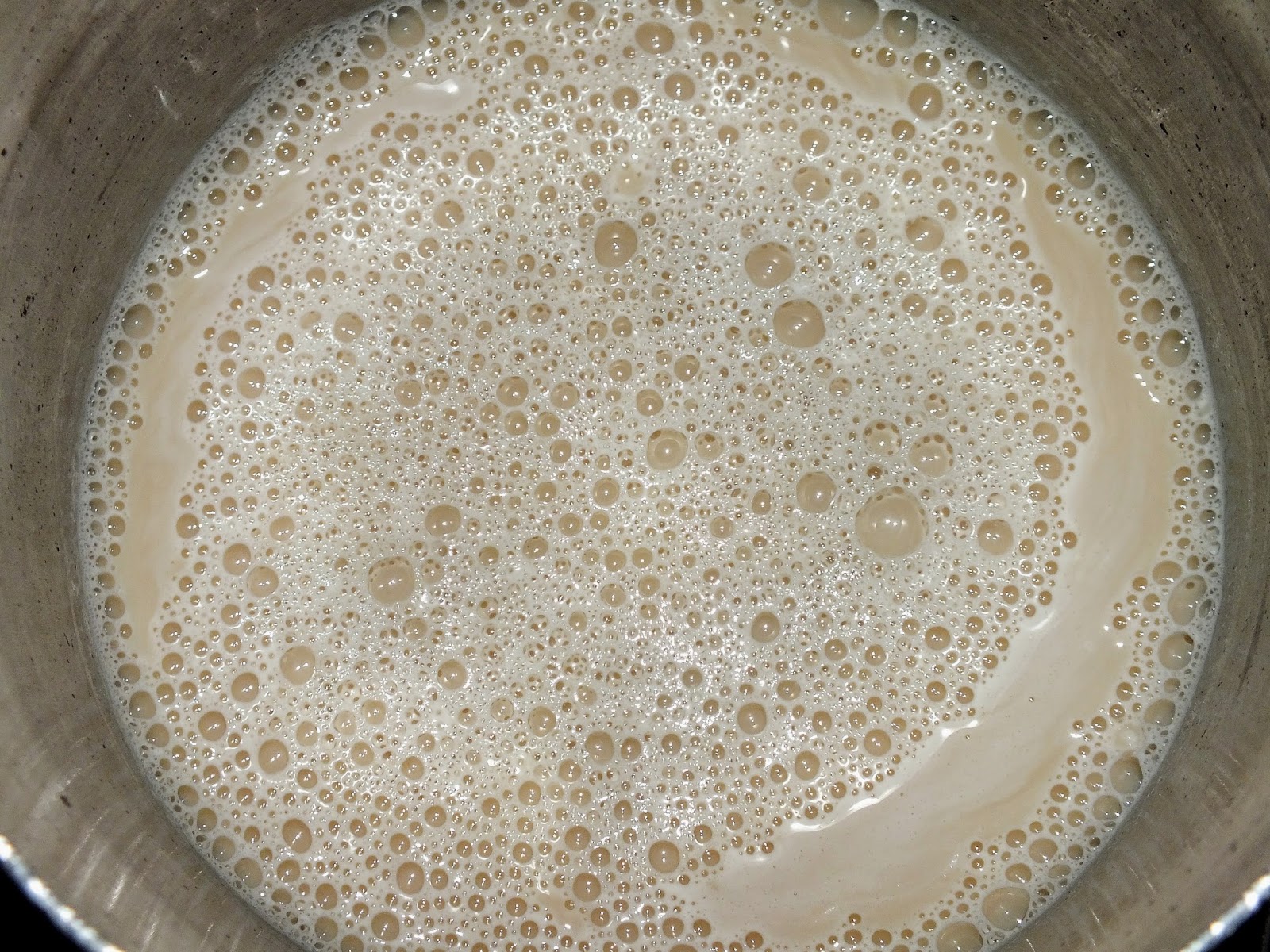 Пока остывает бисквит, нужно сварить крем. В кастрюльке нагреть молоко, добавить сахар, ванилин и муку (лучше через сито)