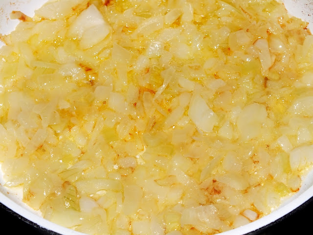 5. Пока пассеруется лук, нужно отделить мясо от костей и нарезать его кусочками. Затем добавить к овощам в бульон. Туда же отправить уже спассерованный лук.