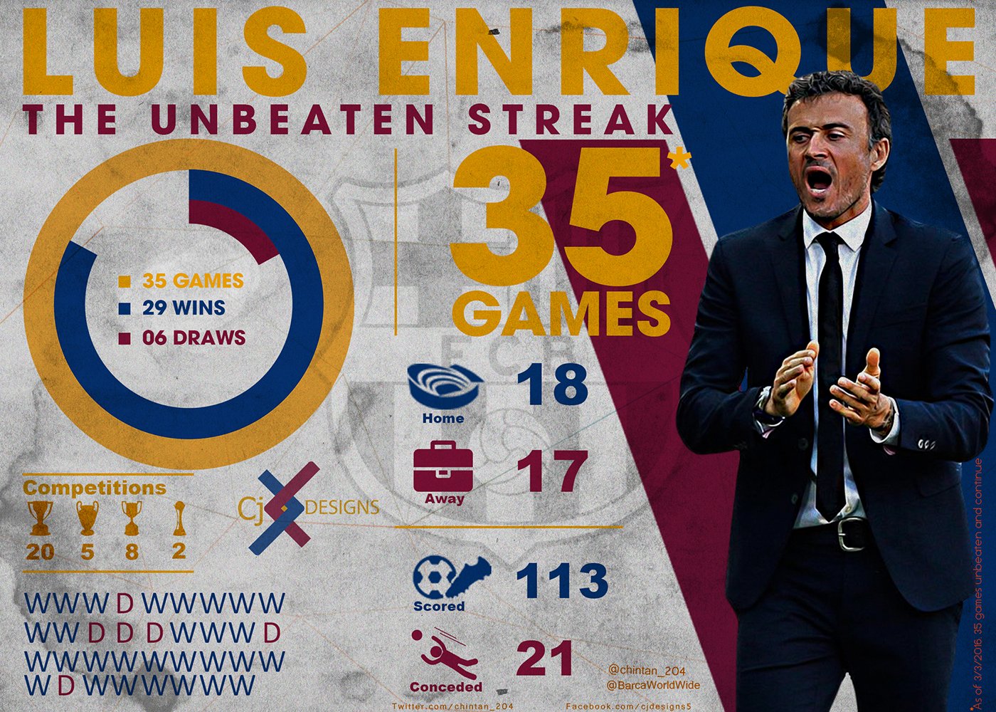 Рекорд по этому показателю без установлен "Реалом" в сезоне 1988/89. Тогда "сливочные" выиграли национальное первенство и дошли до полуфинала Лиги чемпионов. Есть все основания полагать, что "Барселона" может добиться в этом сезоне большего. Команда Луиса Энрике уже вышла в финал Кубка страны и лидирует в Примере с отрывом в восемь очков