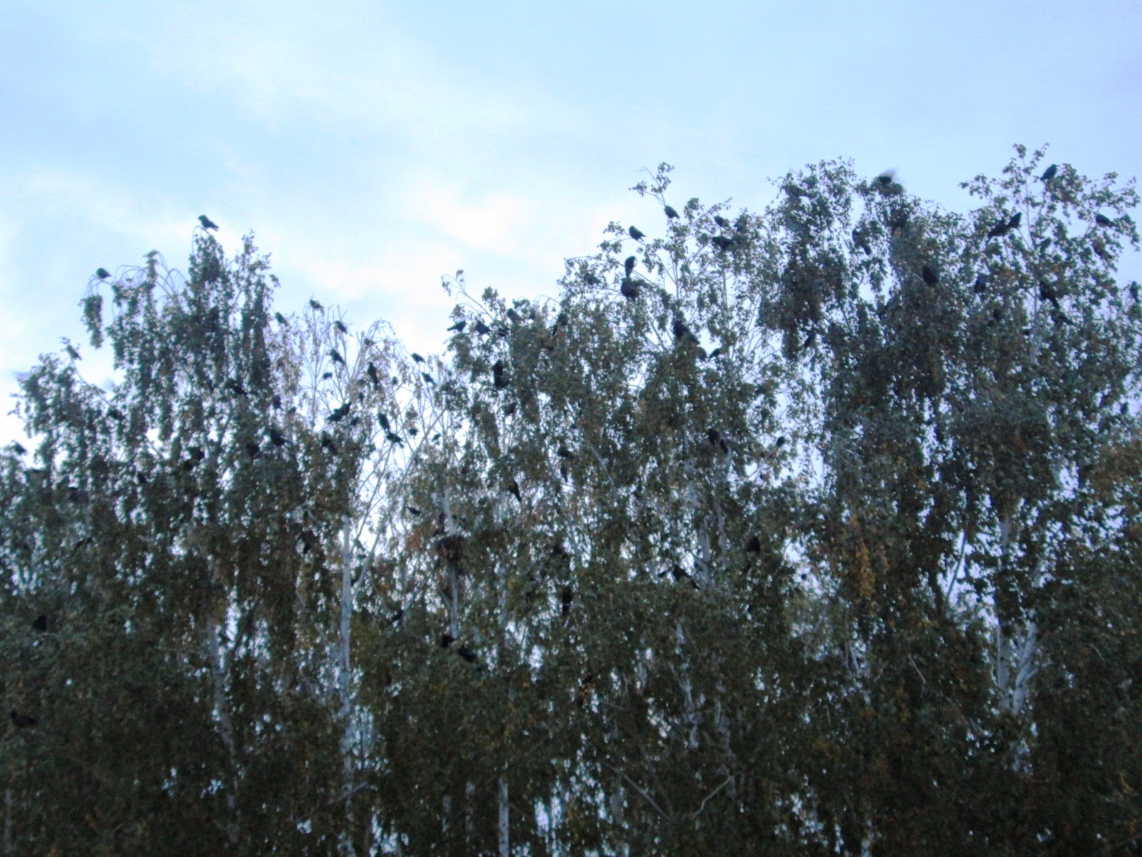 Уже несколько дней подряд по утрам мы наблюдали такую картину: все верхушки деревьев, провода и крыши были облеплены птицами. Они перелетали с места на место, галдели, как бы прощаясь до весны с насиженными местами.