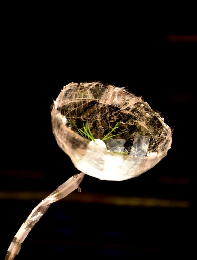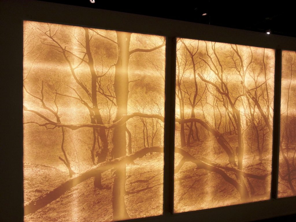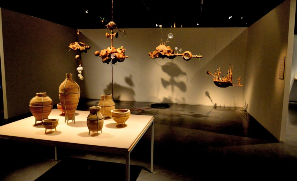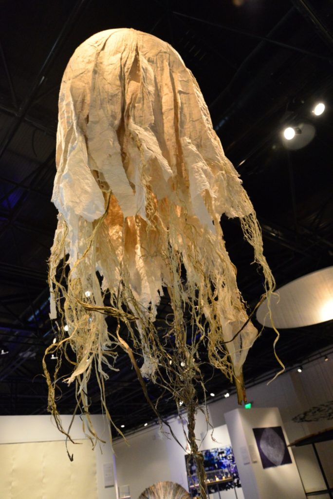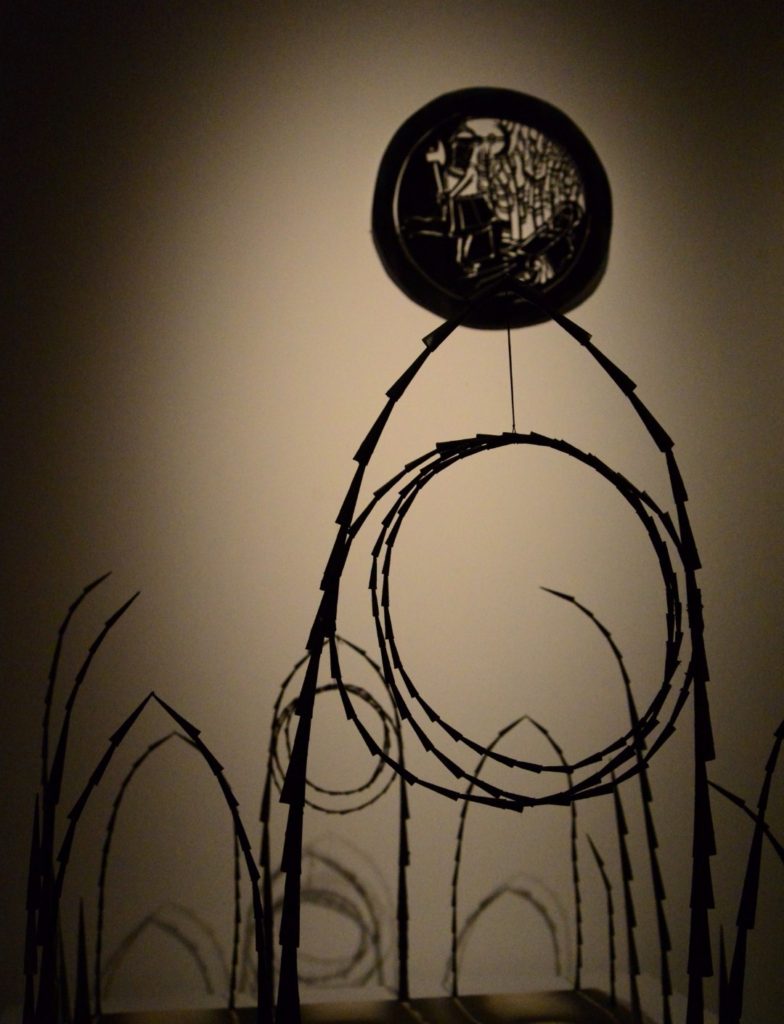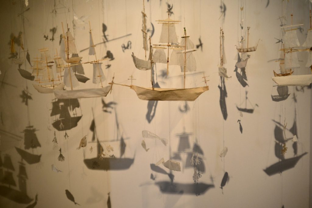 Проще говоря – на бумаге можно не только рисовать или записывать вирши, из бумаги можно сделать все, что угодно – от занавесок до кораблей, пусть эти корабли и небольшие и летают в воздухе, как на новой выставке в Музее Эрец-Исраэль MUZA, более половины работ для которой были сделаны с учетом конфигурации пространства – то есть site specific. Скульптуры из жатой или плотной бумаги, лодки из скрученных полосок бумаги, гигантские золотые бумажные колоны, стены из ярчайших драпировок – также бумажных, бумага – ткань, занавеси, ковер, пример ткачества и пример театра теней. И еще на выставке свешиваются с потолка огромные бумажные абажуры, напоминающие плавающих в океане медуз; маленькие кораблики, похожие не на прозрачных рыбок, поглощаемых этими медузами, и также зависшие в воздухе летающие дома добрых существ из компьютерных игр, прячущиеся в глубине древесных дупл от зрителей (как в старой чешской компьютерной игре Samorost). Инсталляции из бумаги, театр теней, ассамбляжи, стены, перегородки и ширмы из бумаги и два потрясающих панно, на которых изображены лес и сад. В одном случае изображение сделано с помощью тысяч и тысяч мельчайших отверстий – следов от булавки. В другом – вдавленными в плотные листы линиями – наподобие гравюры стиля «белое на белом». А еще есть посуда, собранная из бумажных пластин, гигантская паутина из бумажных прутьев и сундуки памяти, полные бумажных воспоминаний... Так что помните еще, что такое бумага?