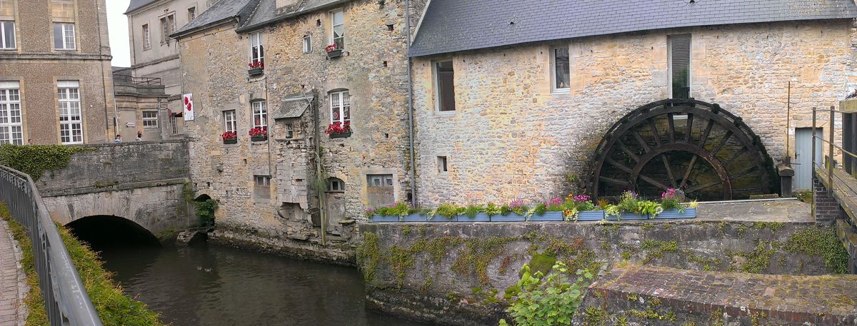 В Байё нашлась речушка, напоминающая Бараду в Дамаске. Даже с работающими водяными колесами. Непонятно только, они для красоты крутятся или выполняют какую-то работу?