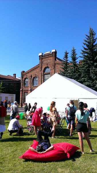 Гвоздем дня должно было стать мероприятие «Путешествие» в Сестрорецке (это Курортный район). Из описания следовало, что здесь будет множество площадок, каждая из которых представляет какую-то отдельную страну или культуру. Нам почему-то показалось, что это будет чем-то похоже на «Времена и эпохи» в Москве, но нет. Выглядело все куда прозаичнее: рекламные палатки, палатки с едой, продавцы сувениров и, конечно же, сцена с артистами. Мы там пробыли недолго, чего-то интересного для себя так и не нашли. Все это проходило на территории завода, который, по-моему, сам по себе был бы интереснее, если бы можно было полазить по его цехам.