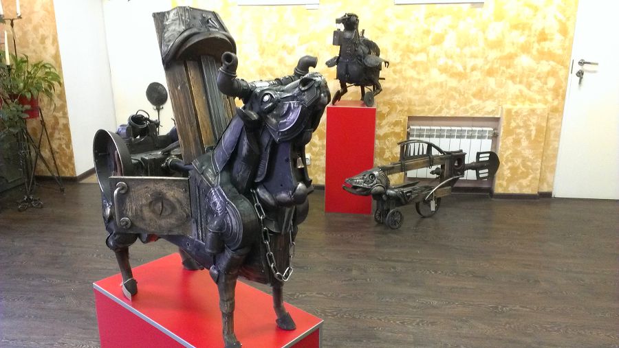 2015-08-25 00:00:00 (читать в оригинале)Прочитала я где-то на просторах интернета про одно любопытное местечко — музей "Русский Левша". Пошли смотреть что же это такое. Не успели зайти в главный зал и пристроиться к экспонатом, как женщина в добровольно-принудительной форме предложила нам проследовать за ней, чтобы послушать о парочке экспозиций в других залах. Во-первых, поведала про некую Ольгу Ардовскую, которая делает скульптуры из всякого железного мусора.