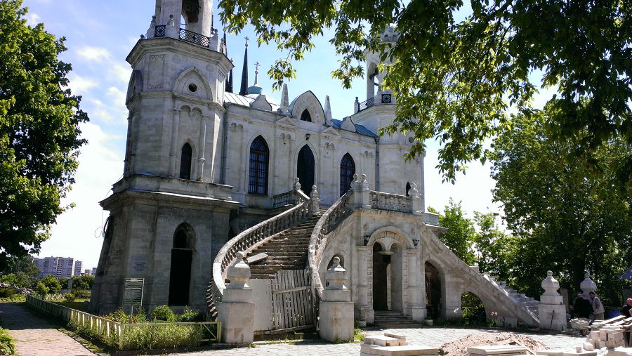 Церковь очень и очень необычная. Построена она была в 18 веке по проекту небезызвестного архитектора Баженова. Если честно, церковь это строение напоминает меньше всего, скорее, какой-то замок.
