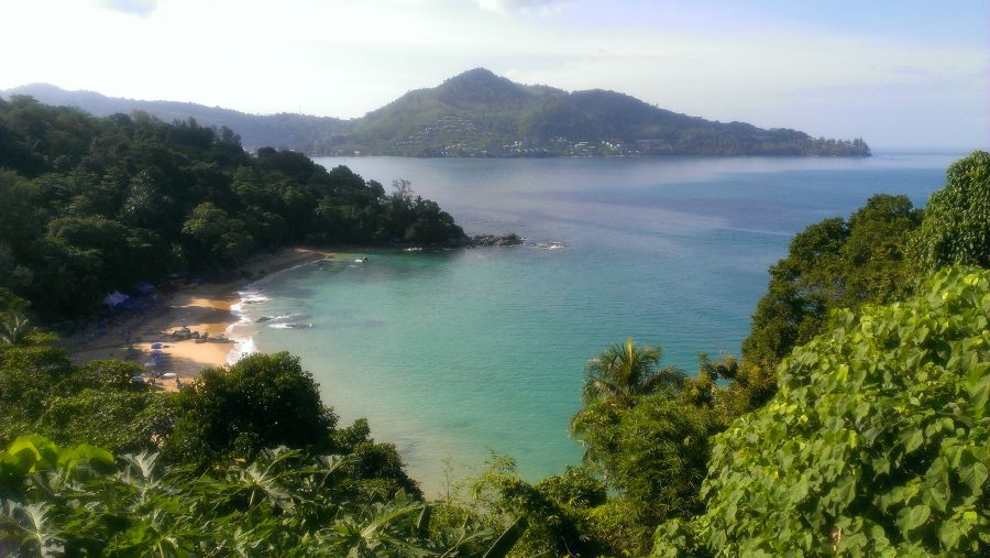 Босяком сквозь тернии и камни мы пробрались к вью-поинту, с которого открывается шикарный вид на кучерявые заросли деревьев, обнимающих маленький уютный пляж.