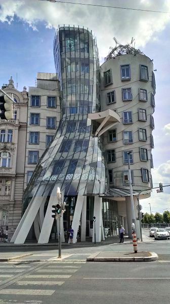 Еще одна знаменитость в Праге - Танцующий дом. Мы его уже видели вчера или позавчера, а сегодня подошли посмотреть поближе. Действительно, забавно.