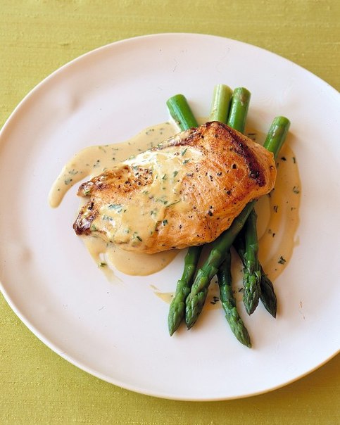 3. Влейте в соус немного сока, оставшегося от жарения курицы. Прямо перед подачей полейте курицу сливочным соусом.