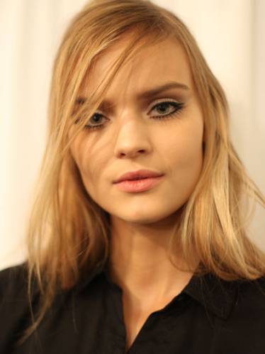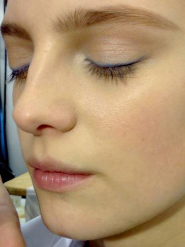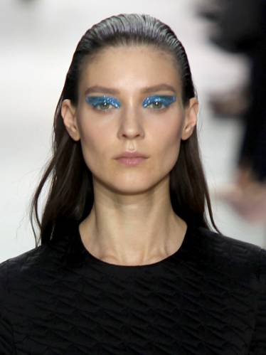 Зачесанные назад волосы и естественного цвета губы отлично сочетались с яркими цветами теней на веках на осенних показах Christian Dior сезона 2014. Визажист Пэт МакГрат (Pat McGrath) создала 2 разных, но очень ярких макияжа глаз: первый цвета хаки, а другой - электро-голубого цвета. Волосы, убранные назад дали отличную возможность высветлить лицо и придать ему структурности. Получился вполне городской образ!