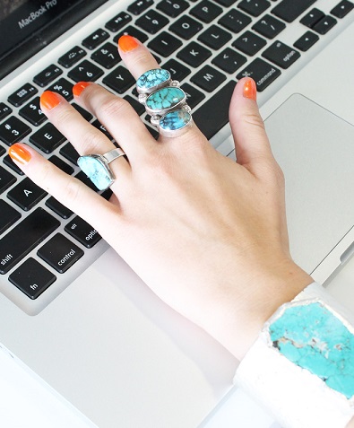 Бирюза – это не тот камень, что останется без внимания лежать в груде твоих украшений. Подними этот голубой оттенок на новый уровень, покрыв ногти лаком персикового или оранжевого цвета. В конце концов, бирюзовый и оранжевый прекрасно дополняют друг друга. Вуаля, идеальный летний дуэт!