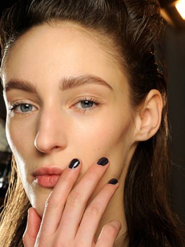 Ногти моделей были закругленной формы и прокрашены темно-фиолетовым цветом лака. Этот оттенок был одним из 9, которые дизайнер создал параллельно с Nars (к...