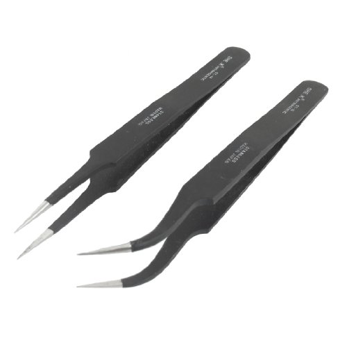 13cm Length Black Anti-magnetic Straight Curved Tweezers 2 Pcs