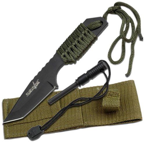 Survivor HK-106320 Outdoor Fixed Blade Knife 7 Overall WITH FIRE STARTER