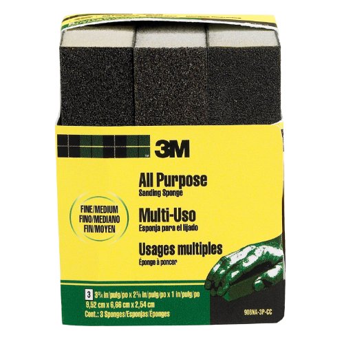 3M Sanding Sponge, Fine/Medium, 3.75-Inch by 2.625-Inch by 1-Inch, 3-Pack