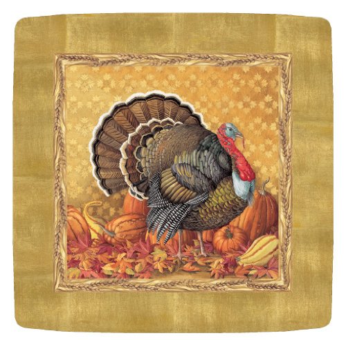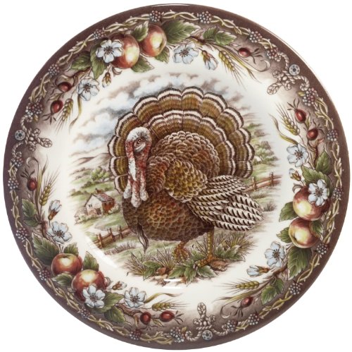 Entertaining with Caspari Harvest Turkey Square Salad/Dessert Plates, Pack of 8
