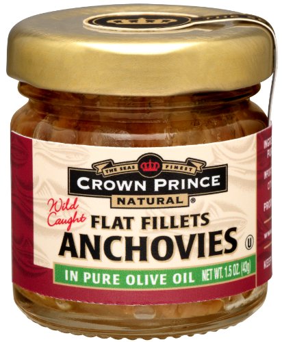Crown Prince Natural Flat Fillets of Anchovies in Pure Olive Oil, 1.5-Ounce Jars (Pack of 18)