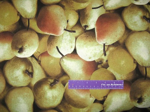 44" Wide FARMERS MARKET Green Pears Cotton Fabric BY THE HALF YARD