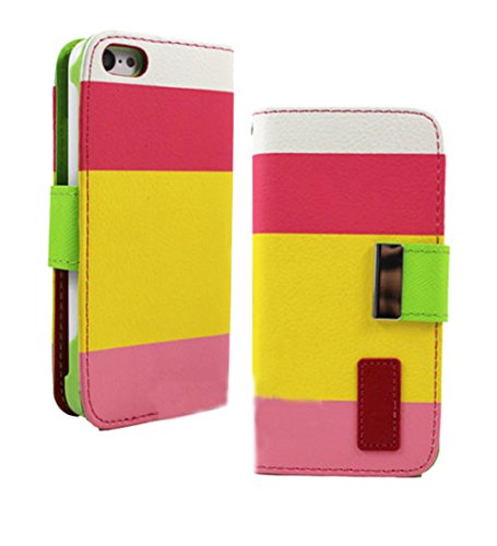 myLife Hot Candy Pink + Summer Time Yellow Stripes {Modern Design} Faux Leather (Card, Cash and ID Holder + Magnetic Closing + Hand Strap) Slim Wallet for the iPhone 5C Smartphone by Apple (External Textured Synthetic Leather with Magnetic Clip + Internal