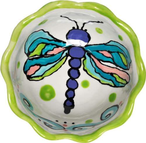 Caffco International Dana Wittmann Round Ceramic Serving Bowl with Ruffle Edge, Dragonfly