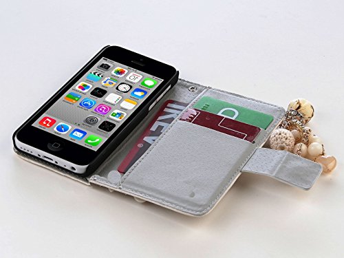 myLife Unique Pearl White I Love You + Diamond Gems + Gold Tassle {Creative Design} Faux Leather (Card, Cash and ID Holder + Magnetic Closing) Slim Wallet for the iPhone 5C Smartphone by Apple (External Textured Synthetic Leather with Magnetic Clip +