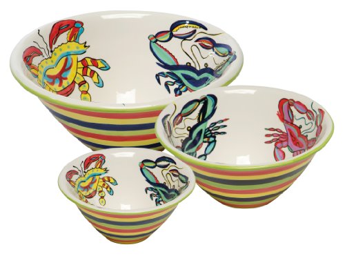 Caffco International Dana Wittmann Round Ceramic Serving Bowls, Crab, Set of 3