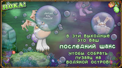 "Пока! В эти выходные - это ваш последний шанс чтобы собрать Пузайца на водяном острове!"