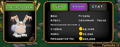 Надеюсь все, кто хотел, успели его сделать. Если у вас до сих пор нет Пузайца, но вы очень хотите его получить - комбинация для скрещивания: Лапага+Гупка, рекомендую держать факелы горящими, а монстры для скрещивания должны быть большого уровня (минимум 10го) - это значительно увеличит ваши шансы на успешное разведение.