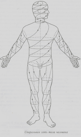 Для эффективной и гармоничной работы органов и систем тела движение энергии в спиральной энергетической сети тела идёт по нисходящим спиралям от макушки головы и по восходящим - от промежности и кончиков пальцев. Спиральная сеть пронизывает всё тело, на любом его участке можно найти её представительство. Особенно удобно воздействовать на спиральную энергетическую сеть на пальцах.
