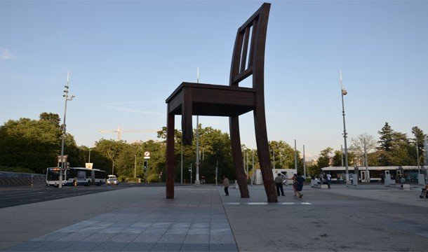 4. В Женеве есть гигантский трёхногий стул, который символизирует протест против использования противопехотных мин