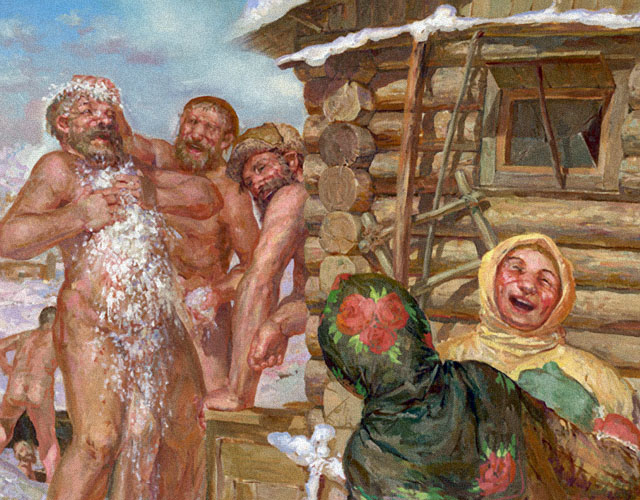 А ведь именно баня и обливание холодной водой, а зимой - обтирание снегом - были для русских основой не только чистоты и здоровья, но что еще важнее, ключевым фактором радости и позитива в жизни.