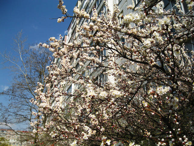 Моя абрикоска хоть и лысоватая, но доросла почти до второго этажа :)