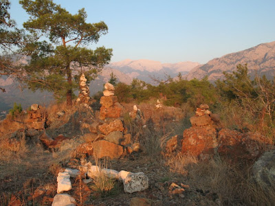 На небольшом пяточке располагалась интересная композиция из нескольких каменных конструкций, очевидно, что современная, но выглядящая довольно примечательно. Скорее всего, ее собрали по камушку визитеры этой горки, и, чтобы не нарушать традиции, я доложил и свой камень.