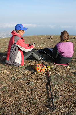 Было запланировано несколько целей: не только забраться куда повыше, а потом спуститься. На склонах Перчема много интересных объектов, которые захотелось посетить. И целебный источник Верности, и развалины Византийского храма, и большая пещера. Жаль, но все это пришлось отложить на следующий раз – густой колючий подлесок очень замедлил подъем, и чтобы успеть до темноты, нам пришлось спускаться южными склонами, а не северо-восточными. Зато мы нашли другой источник с неожиданно очень вкусной водой, посетили церковь Семи Скорбей, не говоря уже о восхитительной роще цветущего миндаля. И конечно перекусили на самой вершине перед спуском. GPS показал среднюю скорость подъема 2,5 км/час (что довольно мало), а максимальную – 13 км/час (думаю его просто роняли, и он засек скорость пока падал).