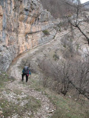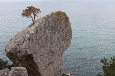 Но идти по тропе, где прошли тысячи праздных отдыхающих, и пройдут еще тысячи – скучно и неинтересно. Тем более что уже через полчасика мы увидели мыс Капчик в непосредственной близости (хотя пройти к нему по прямой оказалось невозможно, скалы круто уходили куда-то вниз, к морю). Поэтому, при первой возможности свернули и начали карабкаться вверх, туда, где нас ждала вершина, ущелье Адамово ложе и лестница, выдолбленная прямо в скале таврами более 2000 лет назад.