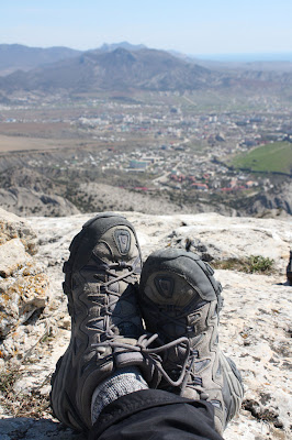 Я, как человек исключительно земной, доверяю ногам. Поэтому скалолазанию всегда предпочту добрый пешеходный трек. Времени в день отъезда не так и много, после обеда уже пора в Симферополь. Поэтому выбрали самый живописный из быстрых недальних маршрутов – забраться на Сокол. Туда-сюда обернулись за 3 часа. Хотя тропа местами была больше именно скалолазная – приходилось упаковывать камеру в рюкзак и цепляться за камни всеми четырьмя конечностями.