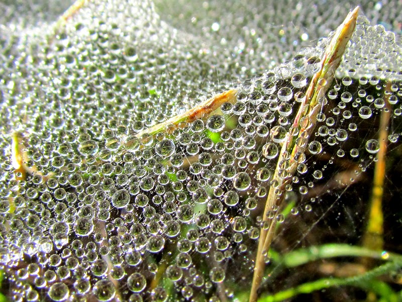 На днях я вам показала росу на траве, а сейчас показываю росу на паутине.