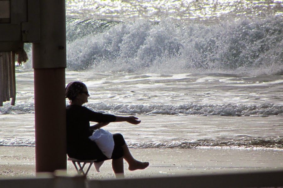 Она сидела на границе пляжа и не пускала женщин, дабы они не увидели как её сын купается в море!