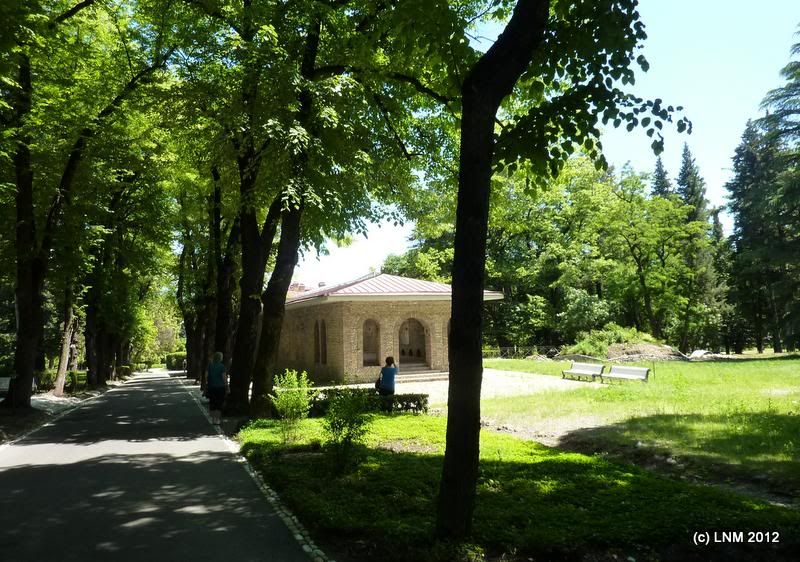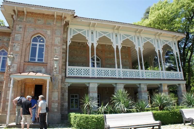 И в общем, если подумать, Сигнахи было единственным стоящим местом за весь сегодняшний день (не считая ресторана, конечно). А что подразумевалось в первой половине дня, не совсем понятно. По программе в Цинандали у нас была энотека – музей вина, но вместо этого мы посетили дом-музей Чавчавадзе. Ну, дом-музей, жили-были, в общем интересно. Ну, парк приятный. Но тащиться так далеко за всем этим не стоило. Зачем мы поперлись в Телави, чтоб так легко от него отказаться – тоже неясно. Бодбе это. Мне кажется, сюда возят все группы, и израильские тоже – и тоже не очень понятно, зачем. Ну я понимаю: для грузин – место паломничества, суперзначимая святая – а мы-то с Л. здесь что потеряли? В общем, день выглядел немного загадочно.
