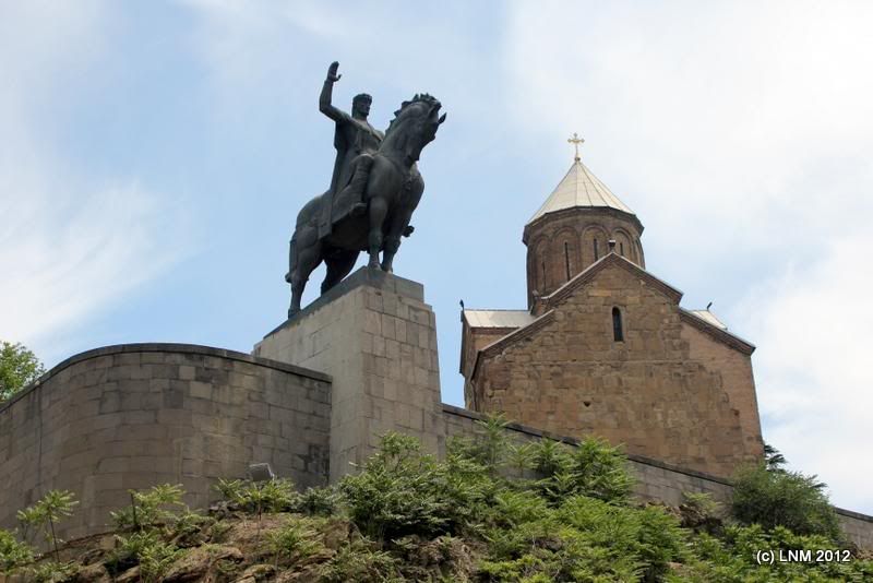 храма Метехи (там была куча народу и если что-то и было внутри, все равно не было видно). Прямо возле него памятник Вахтангу Горгасали, основателю города.