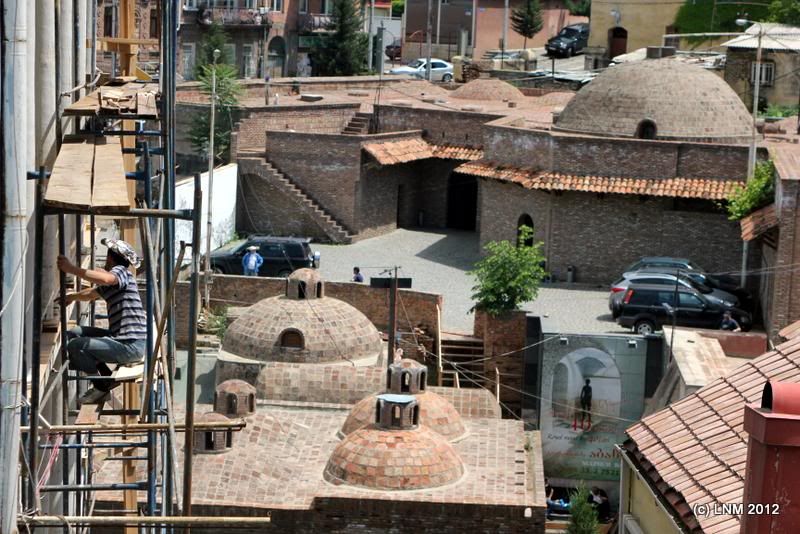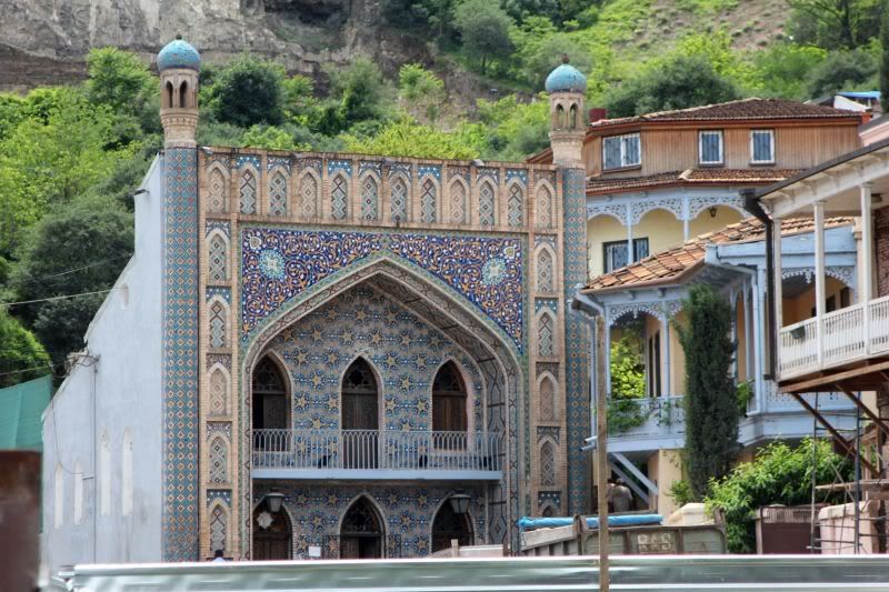 Прошли мимо знаменитых Тифлисских серных бань - квартал называется «Абанотубани». Вот в этой мечети мылся Пушкин, но сейчас она, как и многое в Тбилиси, на ремонте.