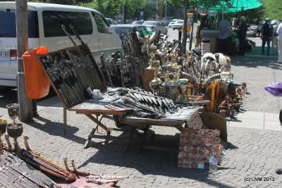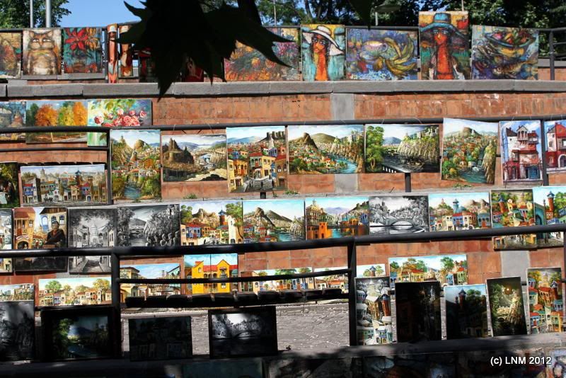 Потом мы сели в автобус и поехали в этнографический музей под открытым небом. Поскольку одна девушка умудрилась у нас потеряться, по дороге заскочили на Сухой мост, чтоб там ее подождать. Пока на минутку только - в той маленькой части, где живопись и сувениры; ужо в последний день мы этот мост охватим в полном объеме.