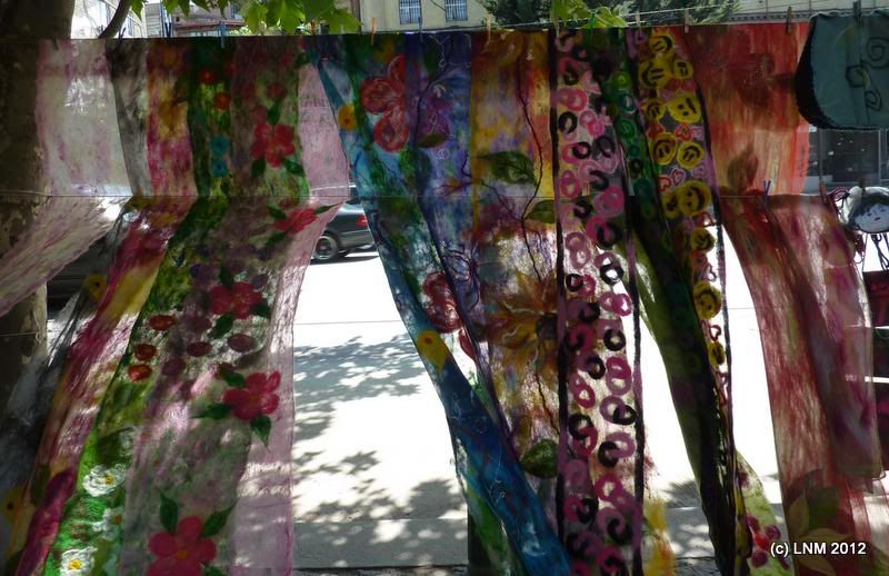 В Тбилиси и окрестностях продаются неописуемой красоты валяные шарфики. Поначалу я все стремилась выбрать самый-самый красивый и его прикупить, но потом вдруг некстати задумалась, как его стирать и в каких обстоятельствах носить – и идея перестала казаться такой привлекательной. Но шарфики и правда очень красивые