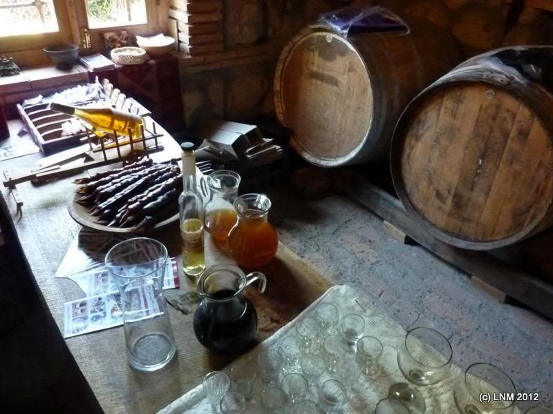 Приехали в Гурджаани в ресторанчик под названием Wine house Gurjaani. Тут прямо при нас пекли хлеб и хачапури, и жарили шашлык, и давали попробовать белое вино Ркацители и красное вино Саперави, и чачу, и чурхелу, и клубнику. Саперави здесь было совершенно другое, нежели вчера на спектакле, и очень, кстати, вкусное. Нина объяснила, что в отличие от многих других сортов винограда, саперави растет не в единственном месте, а в нескольких, и в каждом месте – свой собственный вкус.