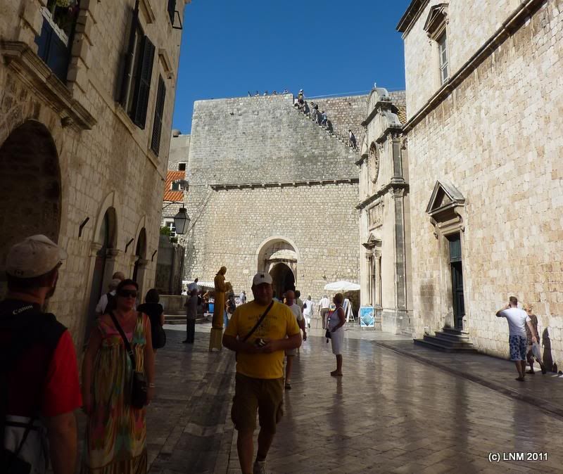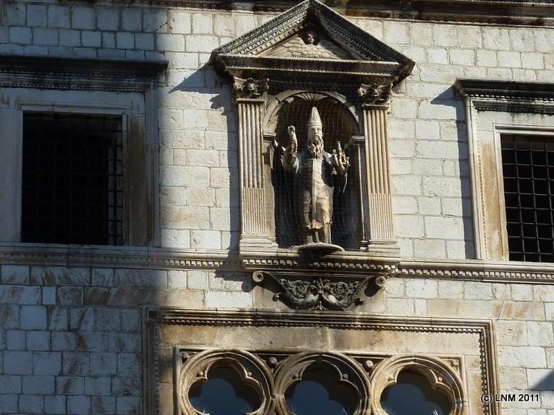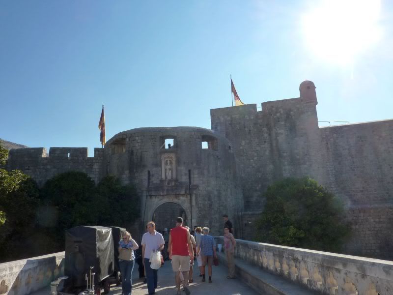 Доехали до Дубровника. Припарковали машину в какой-то жопе, зачем – не знаю. Просто увидели место на ул. Загребачка (а Саше очень нравится слово "Загребачка", особенно банк одноименный) – там и поставили. С таким же успехом можно было бы доехать и до парковки – наверняка было бы ближе. Спустились вниз, к Старому городу, окруженному стенами. Главные ворота, называются Пиле. Барельеф над входом - св. Влах, покровитель города
