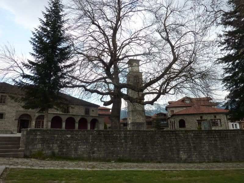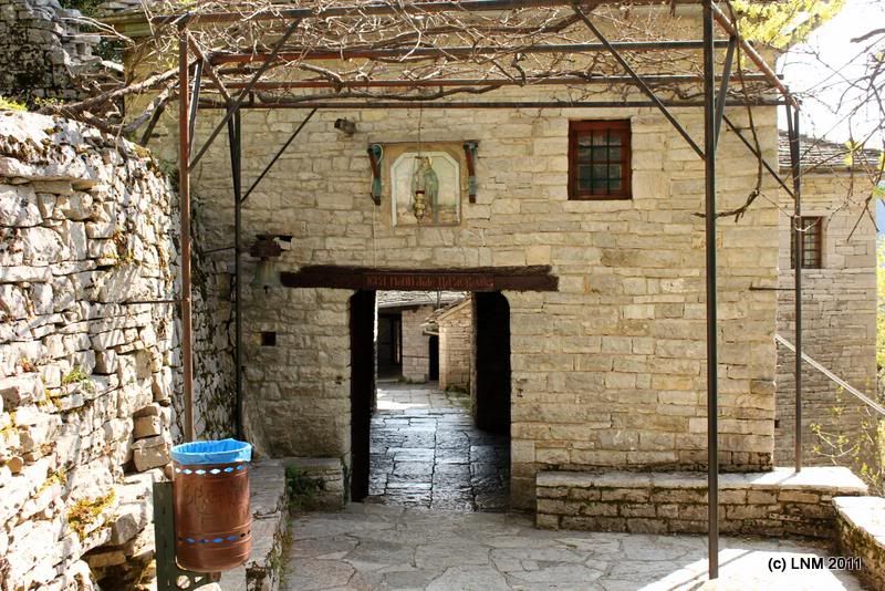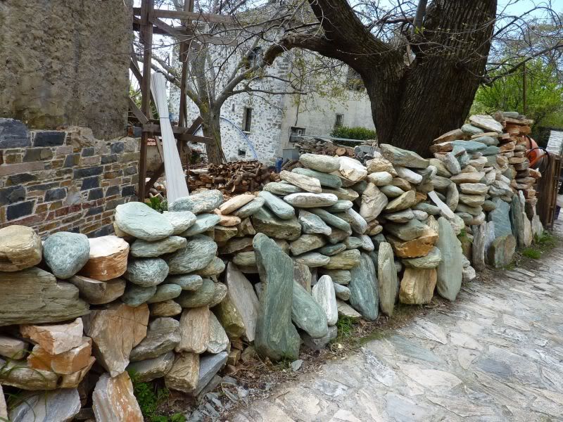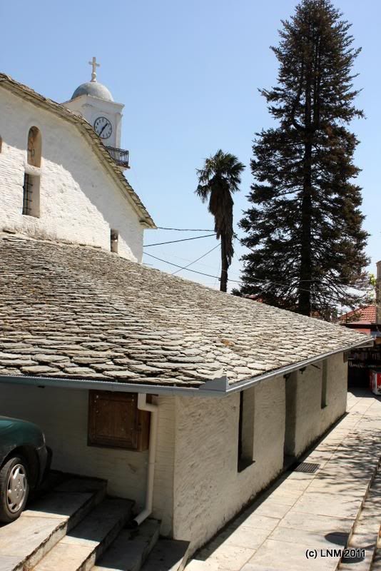 Погуляли по нему. Оно похоже на Вицу, только хуже. Или кажется, что хуже, потому что сердце наше осталось там, где пироги. Даже не нашла ни одной фотографии Монодендри, которую стоило было бы показать. Ходили искать монастырь Айя Параскева, на которую ото всех возможных мест стояли указатели «800 м». Левка предположил, что селяне заказали сразу много разных табличек, а им отпечатали одинаковые и надо их было куда-то девать. Монастырь в конце концов нашли.