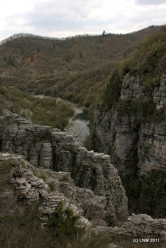Сначала ехали по шикарной скоростной магистрали, сплошь утыканной прекрасными новыми туннелями, потом нас развернули на плохонькую старую дорожку, идущую параллельно (видать, магистраль еще не достроили). И на протяжении тех немногих км, что мы по ней ехали, в голове неотступно крутилась мысль: неужто еще совсем недавно такая важная дорога (из Эпира в Фессалию) столь бледно выглядела на всем ее протяжении? Похоже на то! и слава богу, что ситуация меняется.
